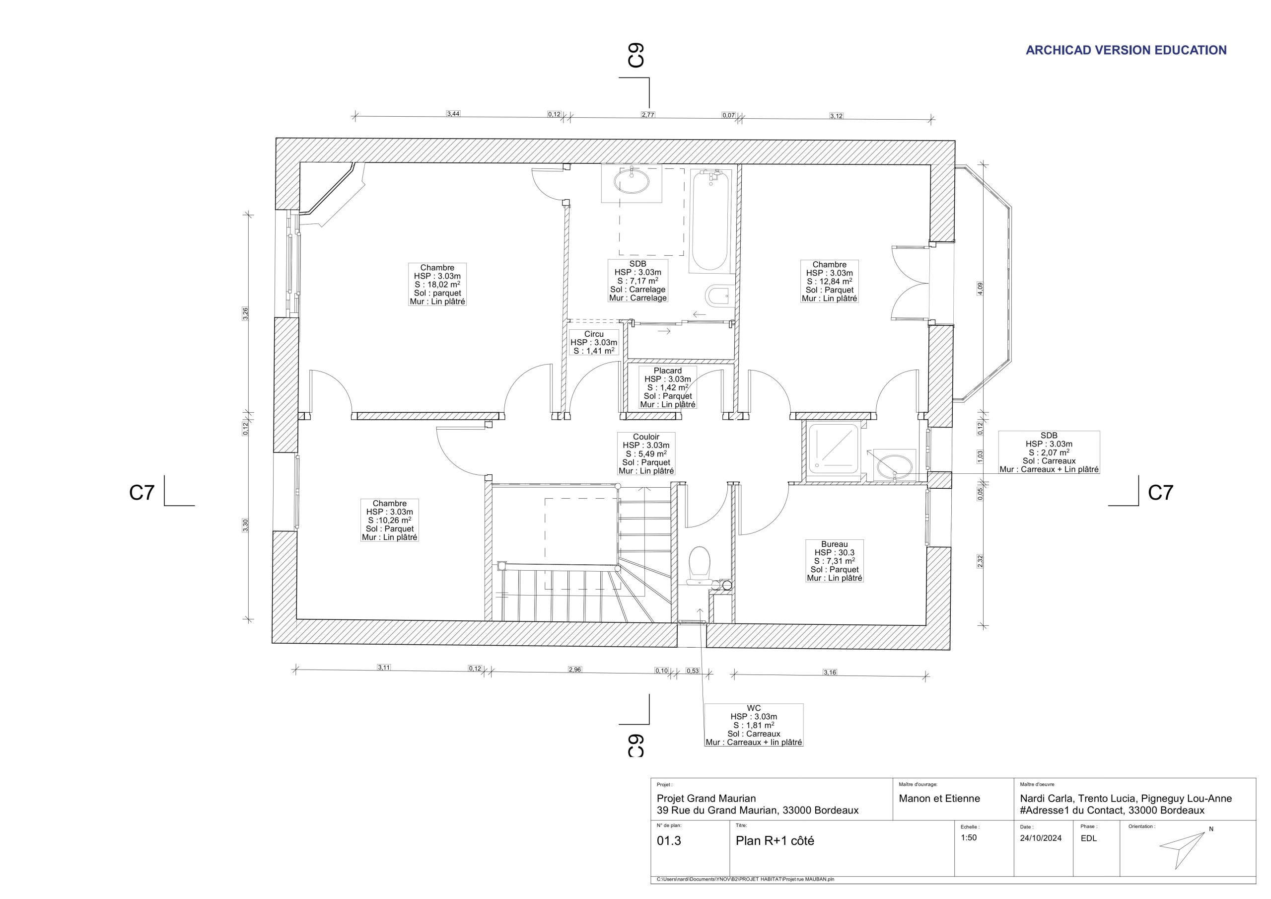 Création de deux suites parentales avec dressing, d’un bureau et d’un escalier pour accéder aux combles.