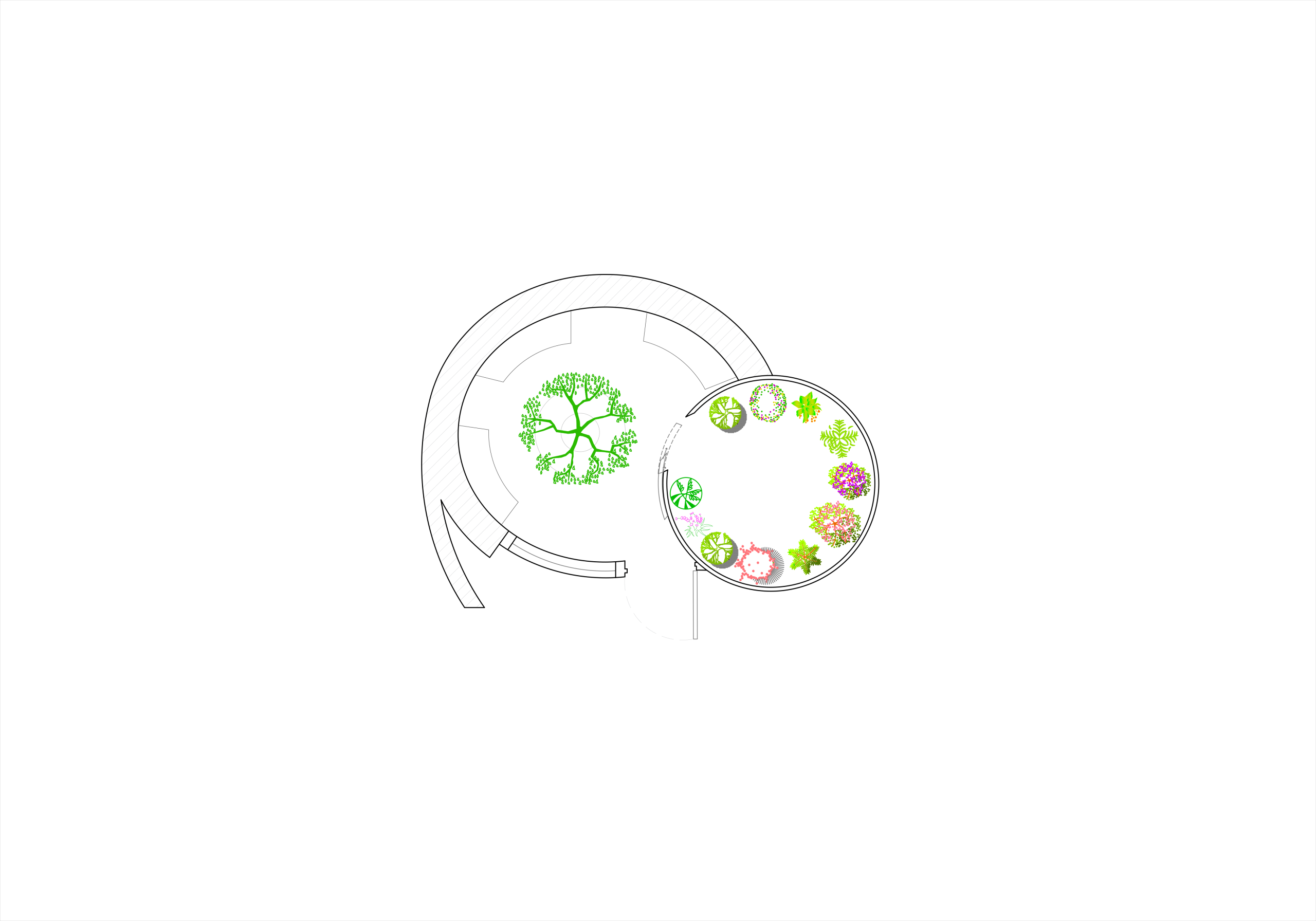 Nous avons choisi des matériaux naturels comme la terre crue, la roche et le bois. Plutôt que de creuser, nous avons intégré le relief naturel et les formations rocheuses à la structure. De plus, nous avons intégrer une serre bioclimatique primitive, offrant lumière, chaleur et un espace de reconnexion à la nature, même en hiver nordique.