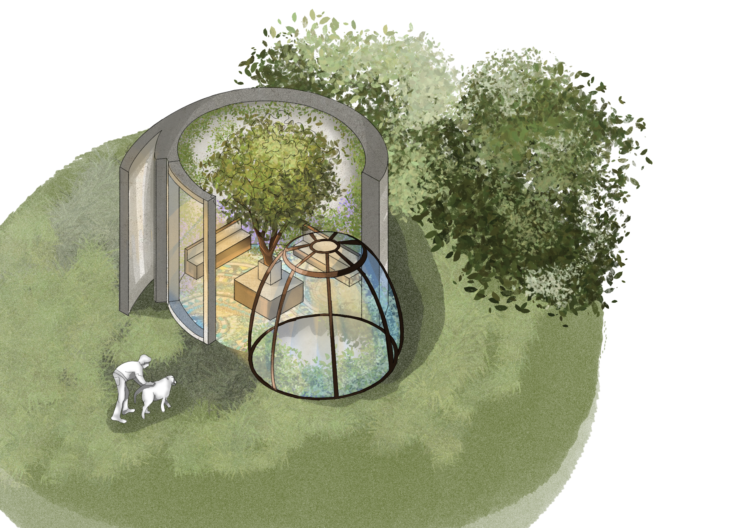 Notre concept, TROGLO SERRA, est un espace troglodyte semi-enfoui inspiré des constructions nordiques et de l’architecture organique.